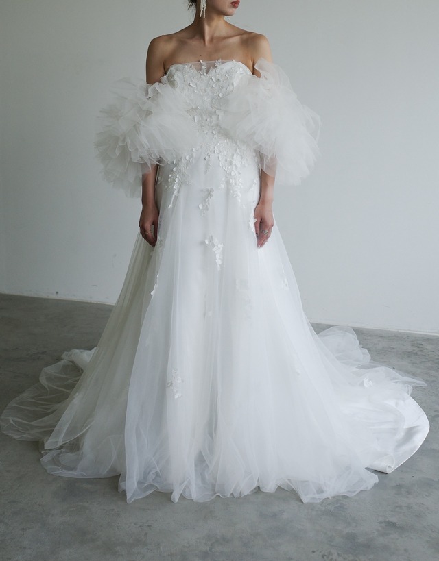 【サイズ】 9号 ⸻ 【料金・期間】 レンタル期間:2泊3日 (挙式前日着→ 挙式翌日中に返却発送) お持ち込み料は負担対象外となります。 ⸻ 【レンタル・試着について】 レンタルの空き状況やご試着をご希望の方は、 LINEよりお気軽にお問い合わせください https://lin.ee/T9RTWaQ ⸻ 【ご注意事項】 こちらのドレスはロケーション撮影NGとなります。 スタジオ撮影・室内撮影でのご利用をお願いいたします。 挙式でのレンタルをご希望の場合は、 裾の破れや汚れ防止のためアテンドの方がしっかりご同伴くださる場合のみご利用可能となります。 その点を一度、担当プランナー様へご確認のうえご検討いただけますと幸いです。